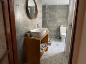 Het huis is geschikt voor maximaal 4 personen en heeft 2 ruime slaapkamers, elk met een eigen voordeur en 2 airco’s voor de warme zomernachten. Er is 1 moderne badkamer met douche.
